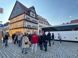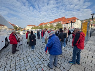 Nach einer nicht ganz so langen Nacht und einer frühstücksmäßigen Stärkung sollten wir nun auch noch etwas mehr über die Kleinstadt Bad F. erfahren. Mit unserer Führerin Petra Wäldchen zogen wir durch die Straßen im Zentrum, lernten, dass die Frankenhäuser scheinbar zu jeder Zeit Geld bekamen, um in ihrer Stadt zu bauen. Nur beim historischen Manniske-Krankenhaus, als einem der ersten modernen Krankenhäuser durch den Arzt Wilhelm August Gottlieb Manniske Ende des 18. Jahrhunderts errichtet, fehlte es dann doch am Geld und von dem Krankenhaus ist heute wirklich gar nichts mehr zu sehen.
