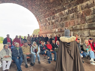 Nachdem auch die letzten Mitreisenden mit leichter Verzögerung im Bus Platz genommen hatten, ging es dann auch schon los. Das Ziel war wie immer gut gehütetes Geheimnis, doch recht schnell war klar, dass es in Richtung Norden geht. Nach einem ersten Zwischenstopp an der "Hohen Schrecke" war die Arche Nebra unser erster Ausfahrtsprogrammpunkt. Nach einer Führung rund um den Himmsscheiben-Fund und die Erkenntnisse, die unsere Vorfahren schon vor fast 4.000 Jahren auf dieser verbildlicht haben, hatte Ali ein anschließendes Mittagessen im nahegelegenen Waldschlösschen geplant. Gut gestärkt ging es dann weiter Richtung Kyffhäuser. Auch dort hatte Ali eine Führung organisiert. Die war richtig Klasse, denn unser "Knappe" im historischen Gewand wusste wirklich einiges zu berichten und transportierte seine Informationen zudem ausgesprochen unterhaltsam.