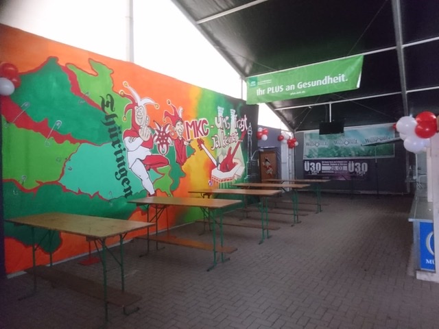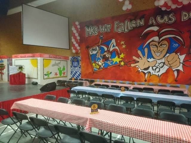 Es ist ein MKC-Phänomen, dass gerade diejenigen hierbei zur Höchstleistung auflaufen, denen man das vielleicht nicht auf den ersten Blick zurechnen mag. Da ist Saalbau-Uli, dessen Pressesprecher Wolfgang, da sind Oskar und Eddi, die immer dabei sind, wenn gebaut oder gerückt werden muss. Da ist der unermüdliche M..., nein , das wäre jetzt wirklich zu geringschätzig, Hans-Joachim, der auch beim zweimillionsten Luftballon nicht verzagt, den für die Hallendeko zu verarbeiten, und sei es auch schon mitten in der Nacht.