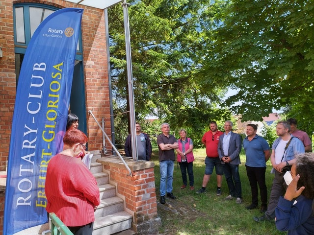 Er engagiert sich nebenbei ehrenamtlich auch noch bei den Rotariern von Erfurt-Gloriosa und die hatten sich mitten in der Zeit des Ukraine-Kriegs ( 🇺🇦) und der daraus folgenden Flüchtlingswelle ein hehres Ziel gesetzt. Denn sie haben kurzerhand ein leerstehendes und von der Stadt seit langem nicht mehr genutztes Gebäude in Erfurt-Rhoda zu einer Flüchtlingsunterkunft hergerichtet.