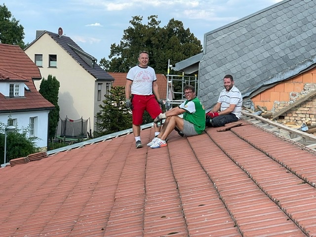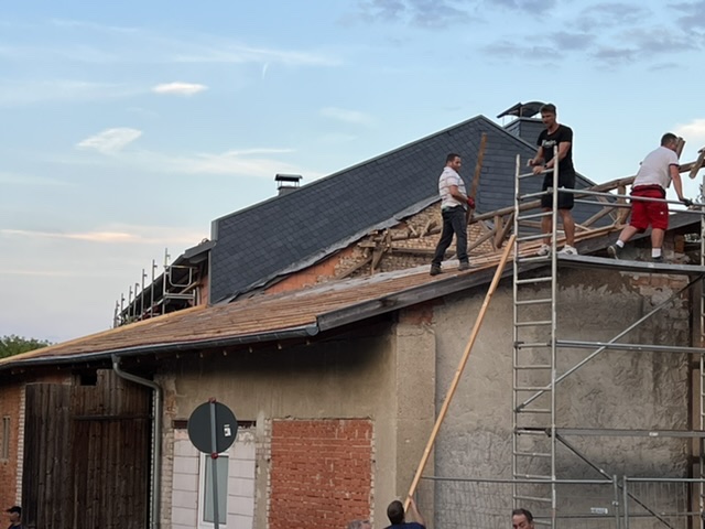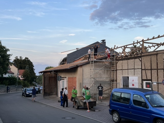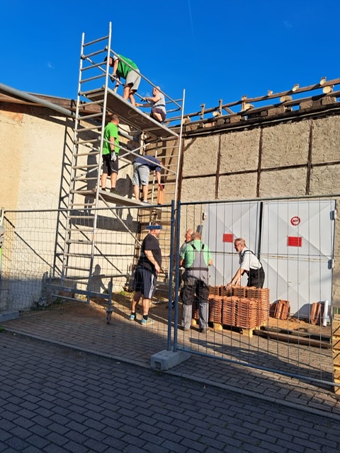 Also haben sich kurzerhand ein paar Vertreter beider Vereine am heutigen Nachmittag getroffen und haben mit dem Rückbau des Materials, genauer gesagt der Dachziegel begonnen.
